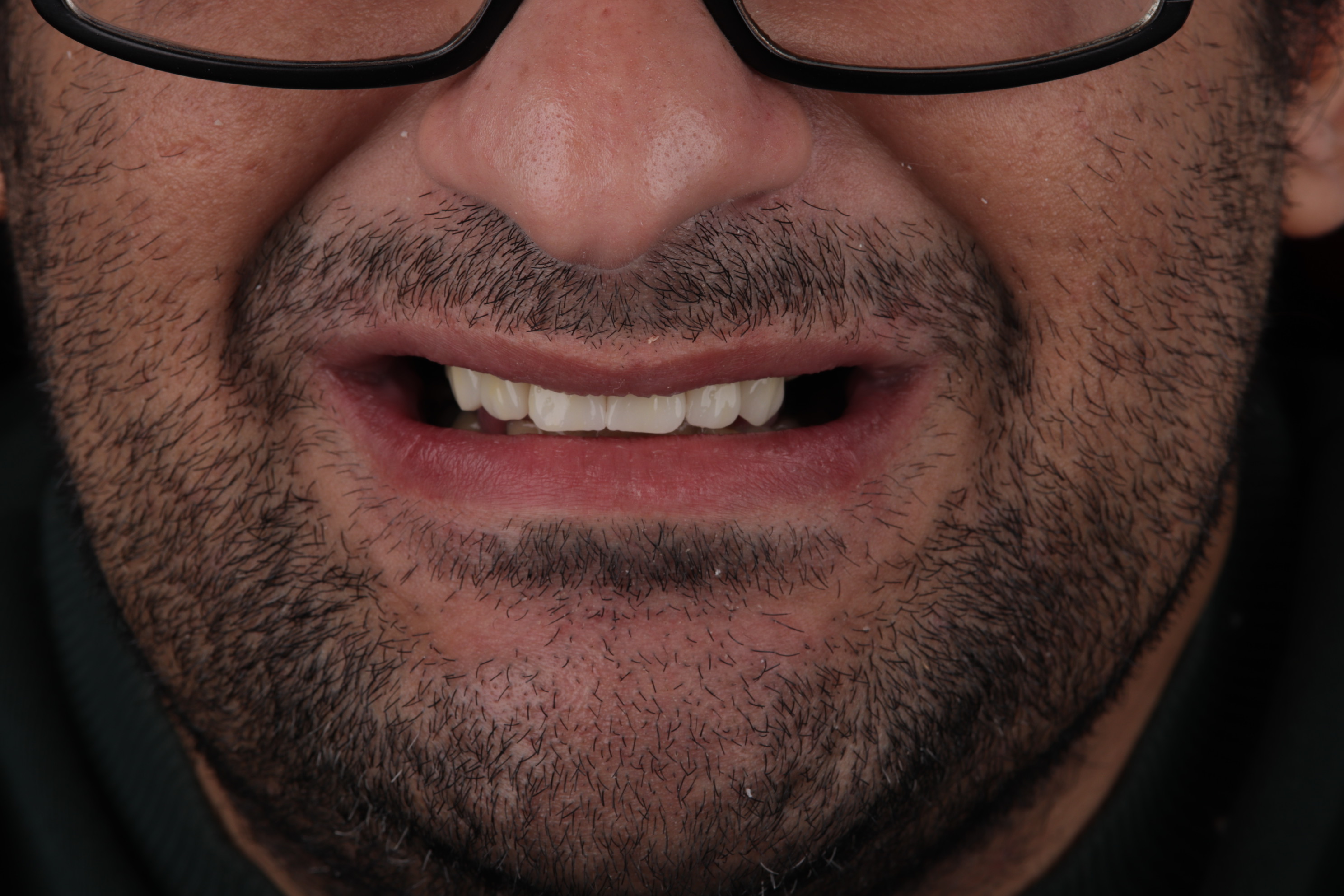 Complete anterior restoration with premium ceramic crowns for a natural, confident smile